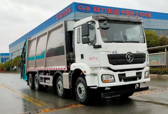 底盤配置: 陜汽德龍前四后八底盤,新M300平地板駕駛室,濰柴350馬力發動機,1950+3425+1400mm軸距,陜齒10擋變速箱,5.5噸曼前橋,11,5噸級曼后橋,1100鋼絲胎,300升鋁合金油箱,300雙層大梁,原廠空調電動玻璃,方向助力ABS等。 上裝配置: 功能介紹:箱體容積30立方,用作裝載生活垃圾,由密封式垃圾箱、填裝器、推鏟、液壓傳動系統和電氣控制系統組成。整車為全封閉型,采用電氣液一體化技術,借助機、電、液聯合自動控制系統,通過垃圾箱、填裝器和推鏟等專用裝置,實現垃圾倒入、壓碎或壓扁、強力提升裝填,把垃圾擠入車廂并壓實和推卸。壓縮過程中的污水全部進入污水廂,解決了垃圾運輸過程中的二次污染的問題,用戶可根據不同的垃圾收集方式,選裝不同的翻桶機構:翻標準垃圾鐵桶ZBT59003-88(300L)、塑料垃圾桶(240L)、塑料垃圾桶(660L)、也可以選裝三角斗,大落地斗垃圾斗、擺臂垃圾斗等翻轉機構?梢赃x裝氣動密封蓋。 1、陜汽德龍30立方壓縮式垃圾車箱體采用國標 邊5底6 厚Q345材質錳鋼板制作,圓弧形箱體,無筋條,底箱及填充器采用加厚鋼板,確保經久耐用。 2、壓縮式垃圾車尾部填裝機構可選裝7種樣式:掛塑料桶式翻轉機構、掛鐵桶式翻轉機構、擺臂式翻轉機構、簸箕斗式翻轉機構、大落地斗、小三角斗、無翻轉機構。 3、壓縮式垃圾車操作系統采用PLC一鍵控制系統,手電一體操作模式,尾部左右雙邊控制盒,帶駕駛室操作;液壓系統選用揚州中梅多路閥,合肥長源油泵,全車海普瑞斯(合資品牌)液壓油缸。 4、壓縮式垃圾車尾部和側部雙污水箱。
