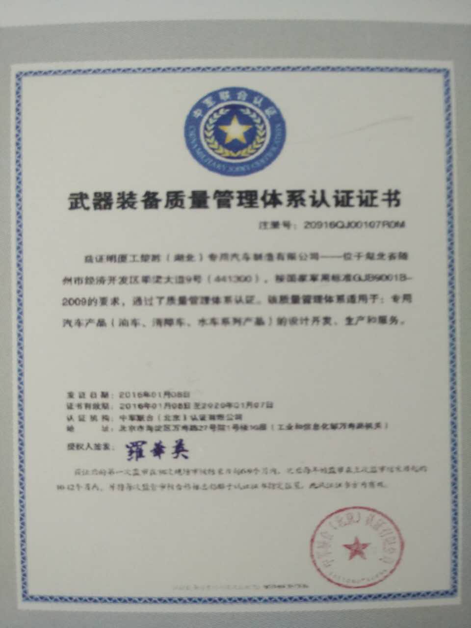 前段時間公司又迎來了驕傲的成績獲得向軍方出售產(chǎn)品的權利,在解放軍后勤總部掛號的企業(yè) 《武器裝備質量管理體系認證證書>