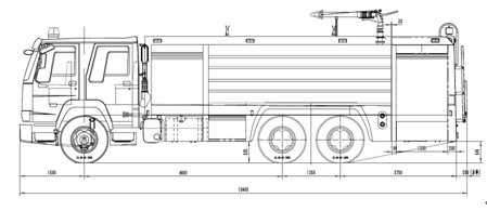 17噸泡沫消防車采用中國重汽集團濟南卡車股份有限公司ZZ5357TXFV464MF5型二類汽車底盤,原裝雙排駕駛室,乘員2+4人,該車駕乘舒適輕便。上裝采用外露式水罐,整車載液量為水14000kg;泡沫3000kg。器材箱采用高質量鋁合金卷簾門。底盤取力,發動機型號為MC11.44-60 ,最大功率327kW,通過萬向聯軸器驅動安裝在汽車尾部泵房里的上海茸申CB10/100型低壓消防泵,可在1.0MPa下穩定輸出100L/s的流量;車頂安裝成都威斯特消防器材有限責任公司生產的PL80型消防炮(泡沫消防車),流量80L/s,對應壓力0.8MPa,最大承壓1.3MPa,純水射程75m,泡沫射程70m,可360°旋轉。同時該車具有比功率大、綜合性能強、操控集中簡便等特點。